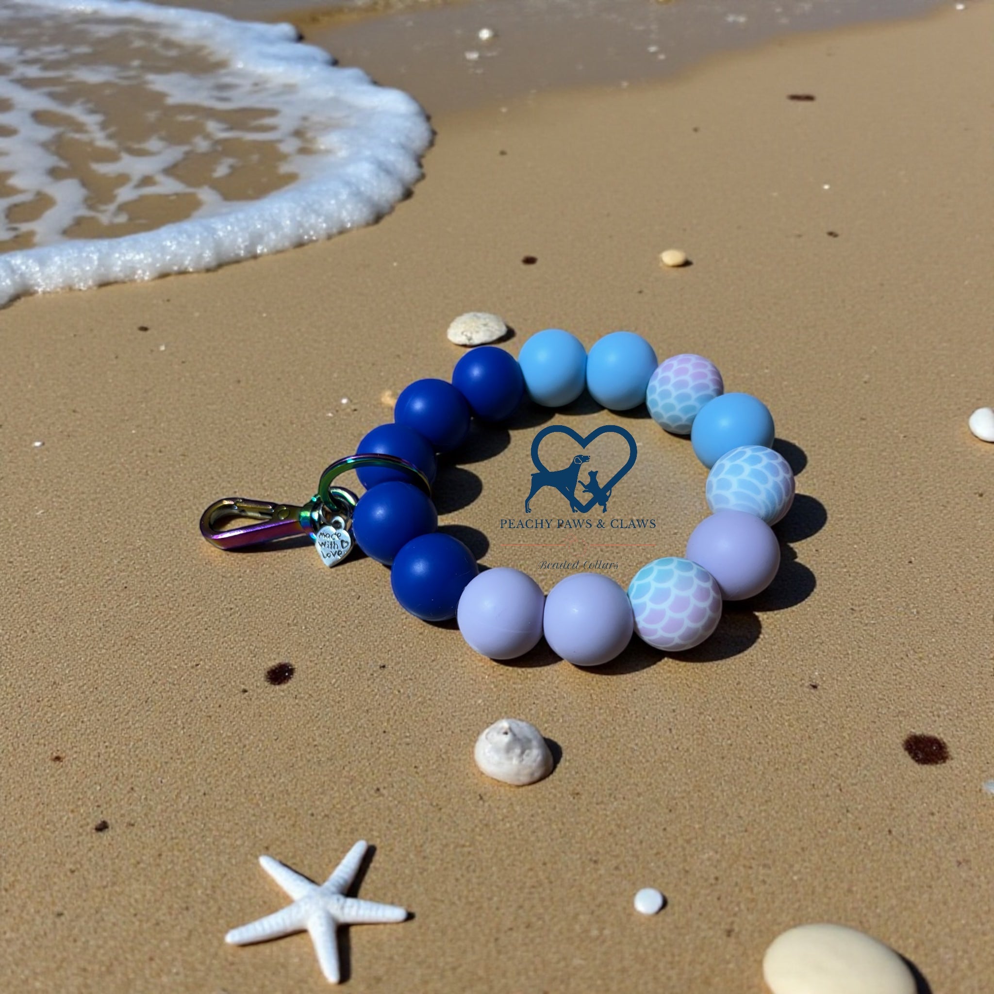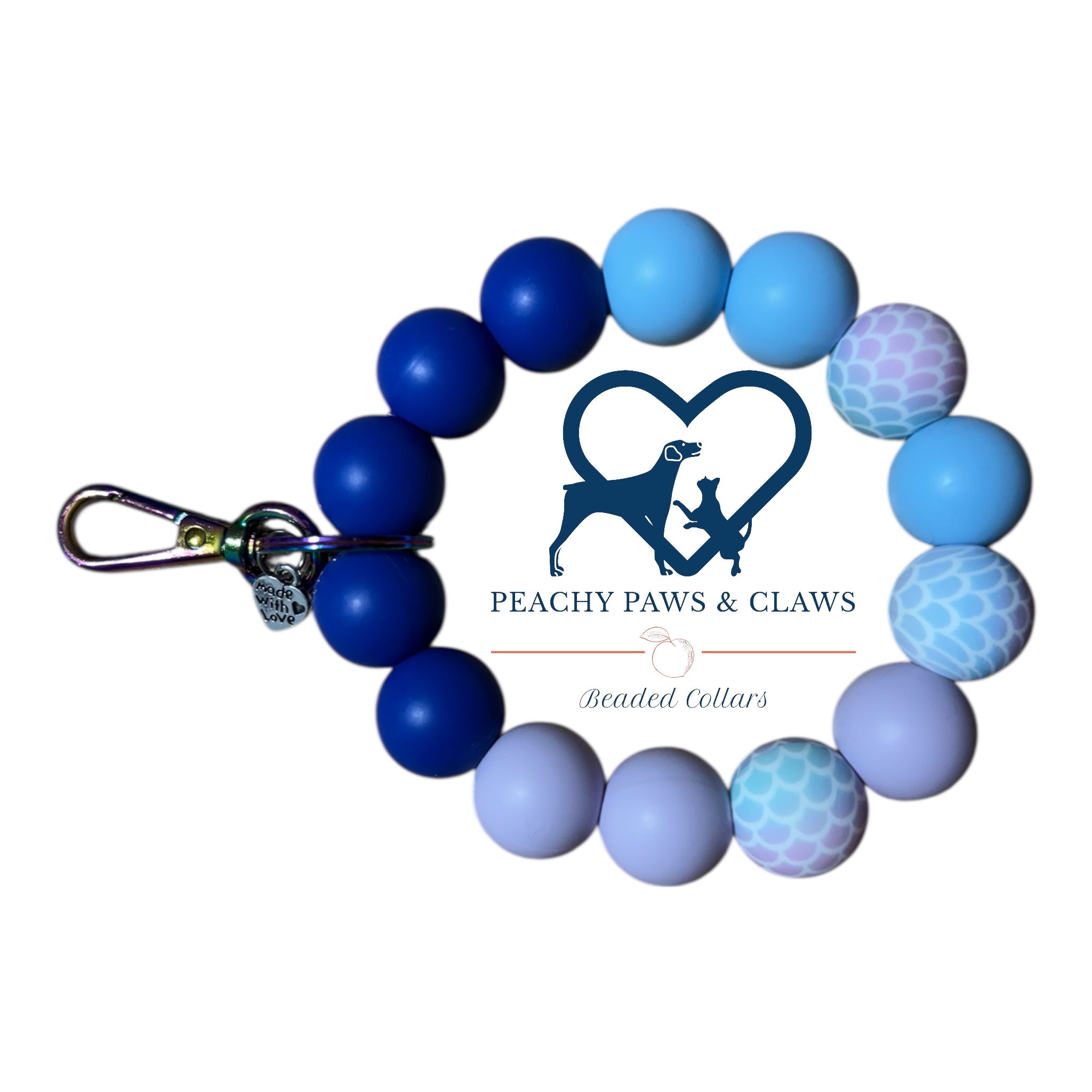 Handmade with silicone beads and metal hardware.